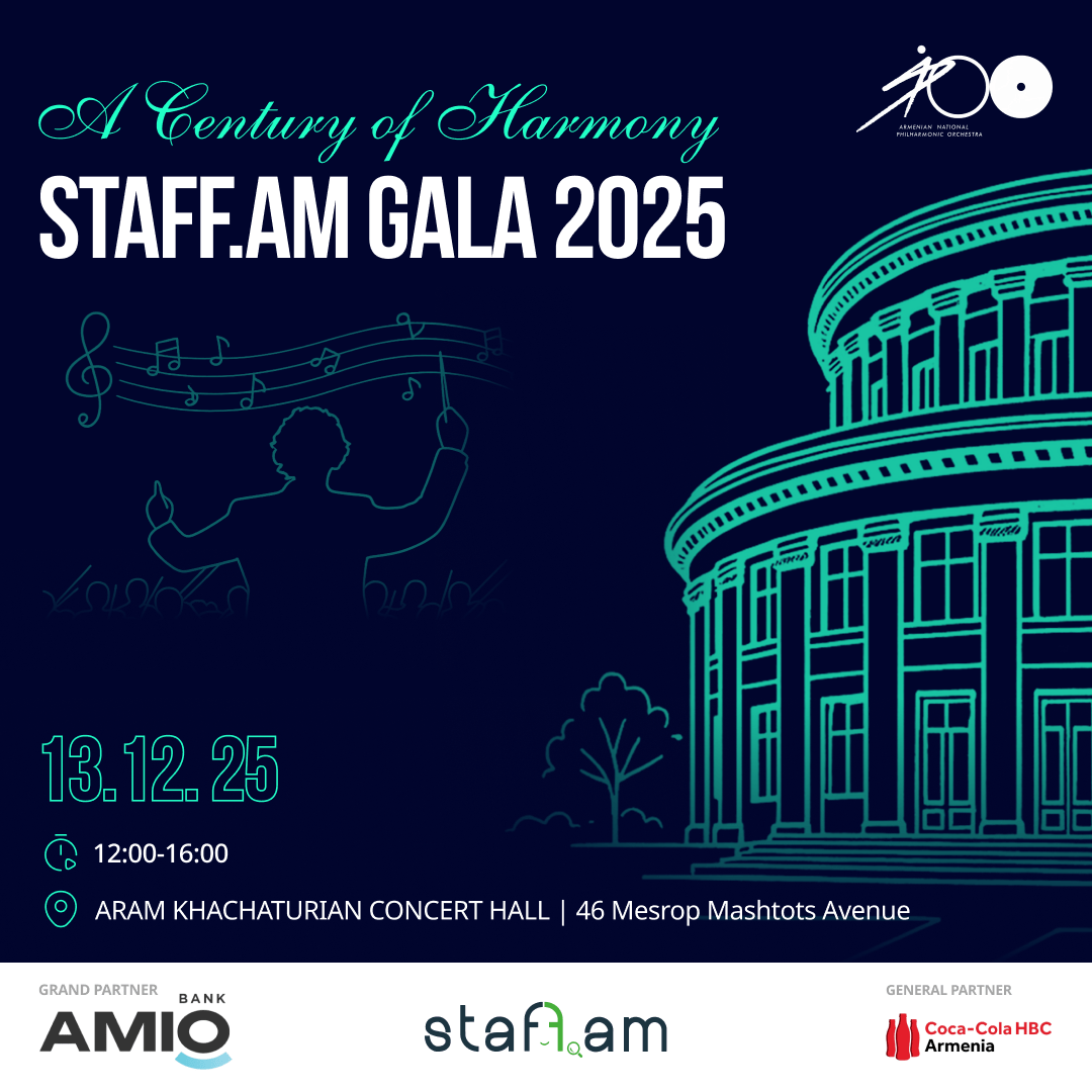 Մեկ դար ներդաշնակություն․․․ «A Century of Harmony» ահա այս խորագրով ենք այս տարի Ձեզ դիմավորելու HR և բիզնես համայնքի ամենասիրելի «STAFF.AM ԱՄԵՆԱՄՅԱ ԳԱԼԱ 2025» միջոցառմանը, դեկտեմբերի 13-ին, Արամ Խաչատրյան համերգասրահում:
